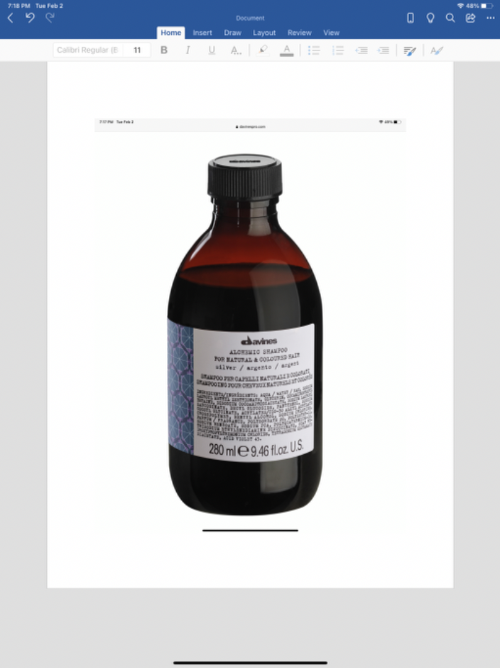 Colour shampoo suggested for white hair and for hair that has just turned yellow due to bleaching or long exposure to sun.